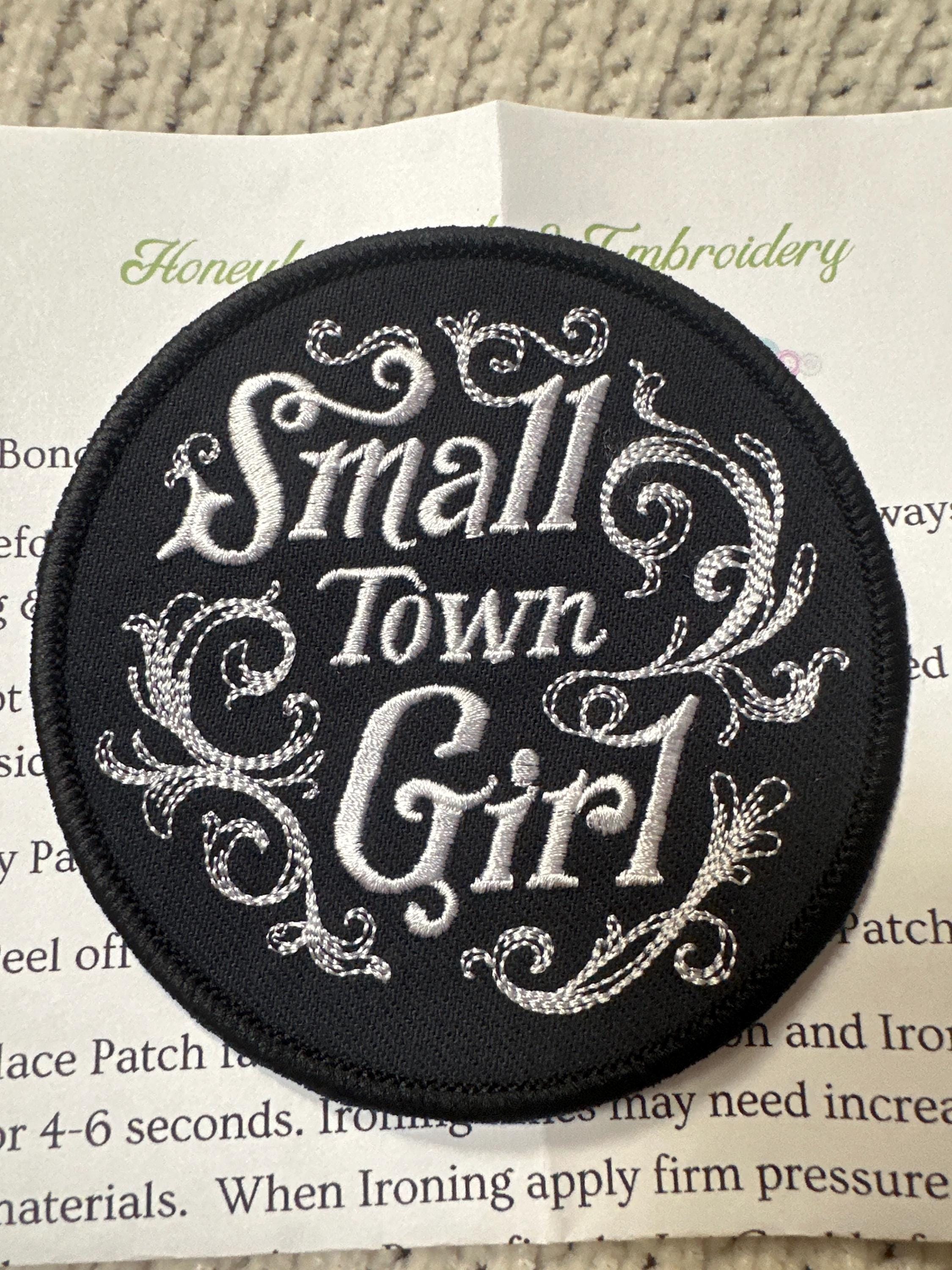 Small Town Girl Embroidered Patch: Iron-On Applique, USA Made